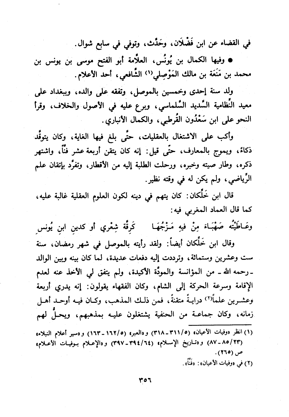 وفيها الكمال بن يونس، العلّامة أبو الفتح موسى بن يونس بن محمد بن منعة بن مالك الموصلي [1] الشّافعي، أحد الأعلام.
