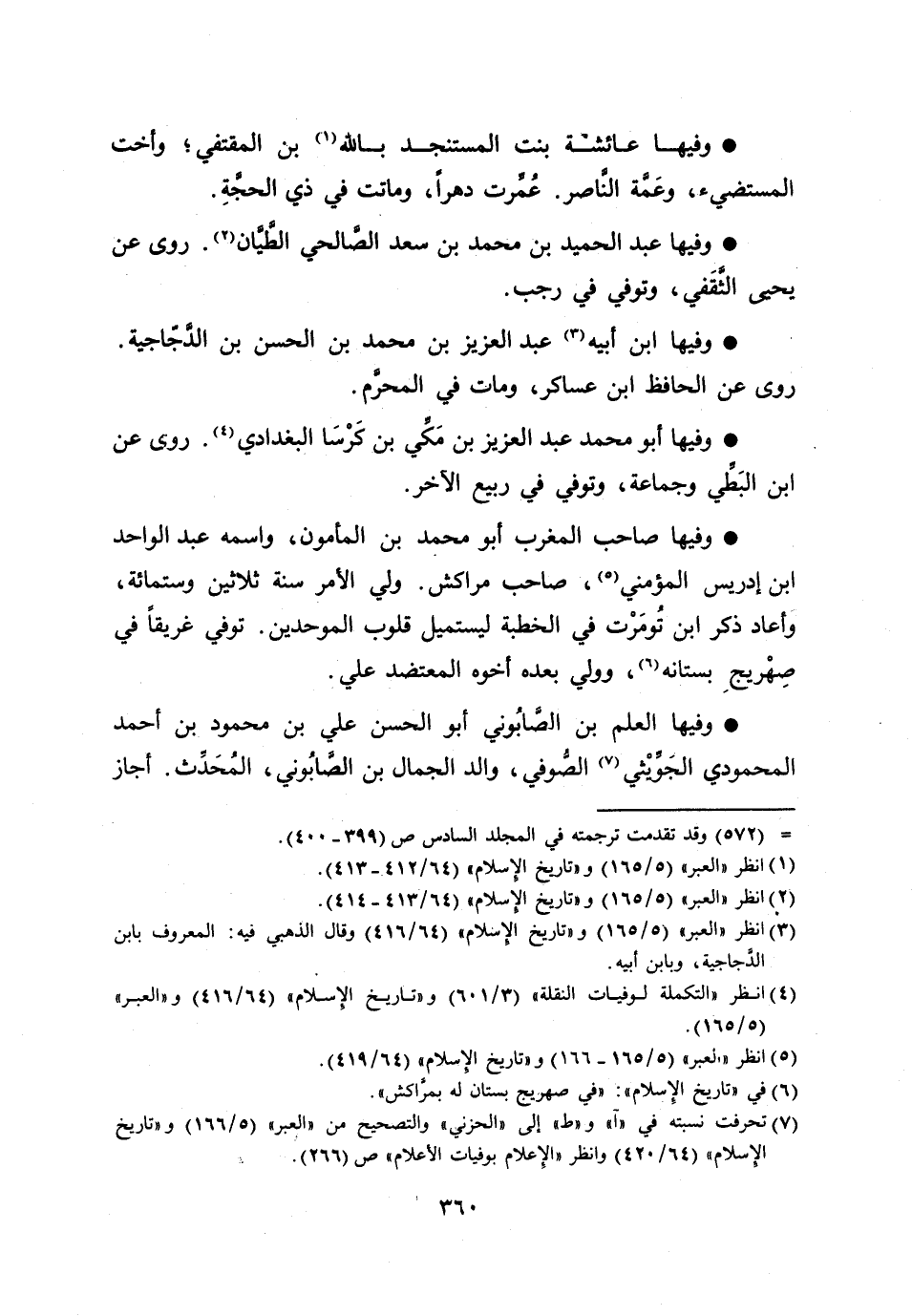 [5] انظر «العبر» (5/ 165- 166) و «تاريخ الإسلام» (64/ 419) .