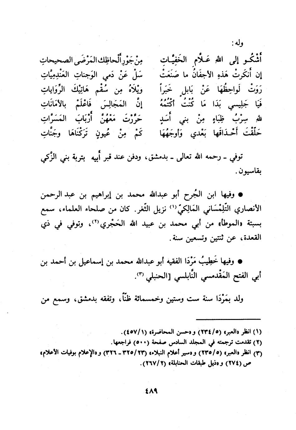 [3] انظر «العبر» (5/ 235) و «سير أعلام النبلاء» (23/ 325- 326) و «الإعلام بوفيات الأعلام» ص (274) و «ذيل طبقات الحنابلة» (2/ 267) .