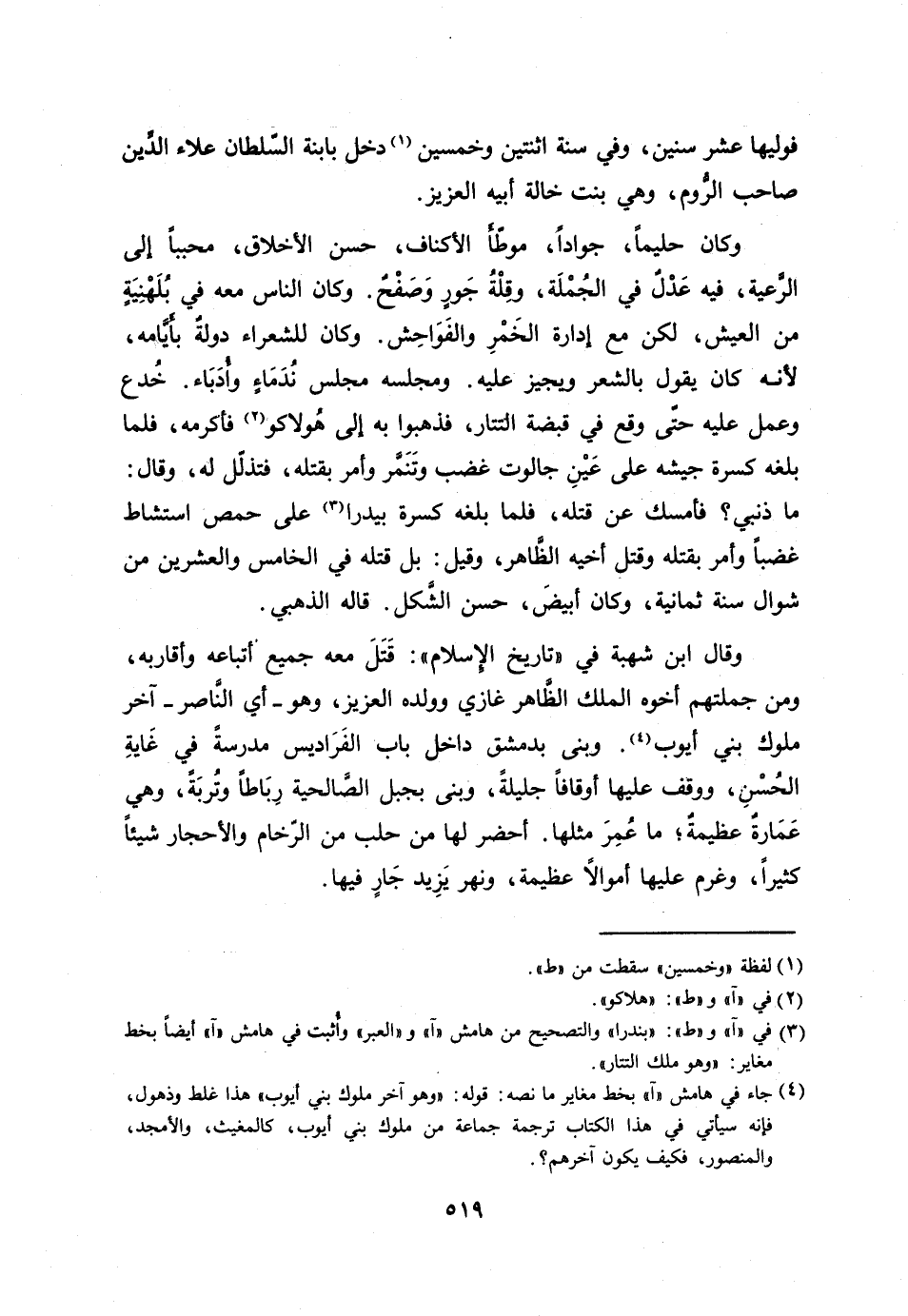 [4] جاء في هامش «آ» بخط مغاير ما نصه: قوله: «وهو آخر ملوك بني أيوب» هذا غلط وذهول، فإنه سيأتي في هذا الكتاب ترجمة جماعة من ملوك بني أيوب، كالمغيث، والأمجد، والمنصور، فكيف يكون آخرهم؟.