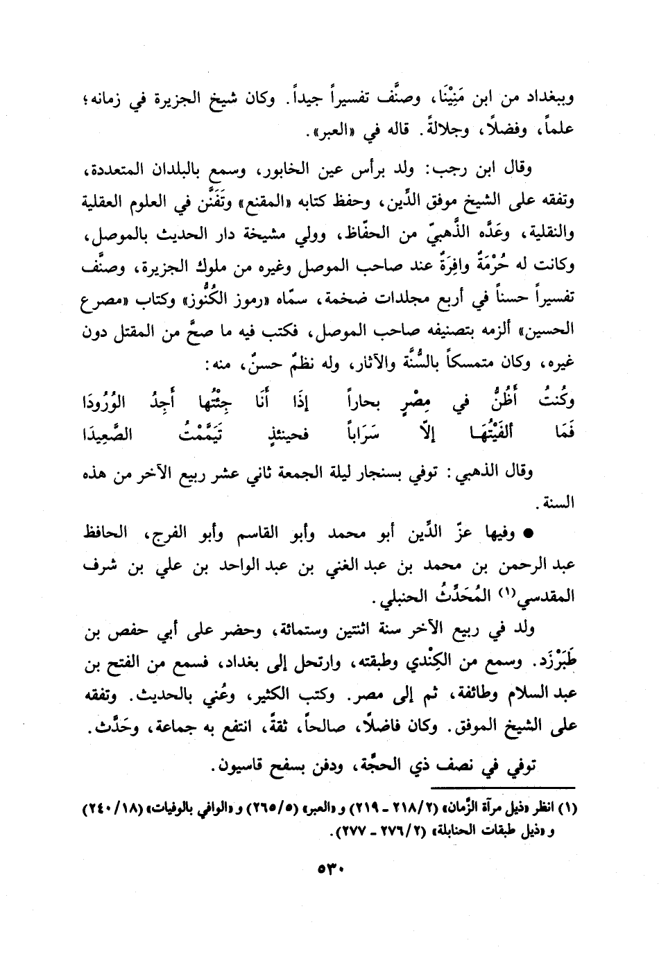 [1] انظر «ذيل مرآة الزّمان» (2/ 218- 219) و «العبر» (5/ 265) و «الوافي بالوفيات» (18/ 240) و «ذيل طبقات الحنابلة» (2/ 276- 277) .