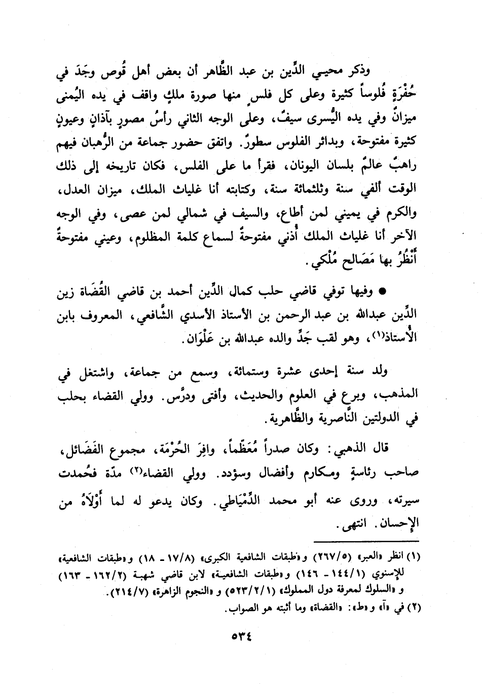 وفيها توفي قاضي حلب كمال الدّين أحمد بن قاضي القضاة زين الدّين عبد الله بن عبد الرحمن بن الأستاذ الأسدي الشّافعي، المعروف بابن الأستاذ [1] ، وهو لقب جدّ والده عبد الله بن علوان.