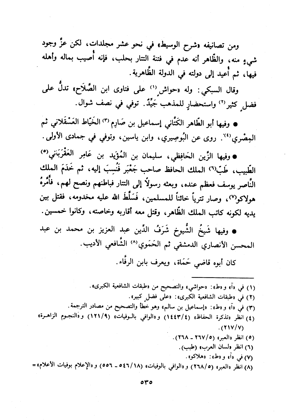 [1] في «آ» و «ط» : «حواشي» والتصحيح من «طبقات الشافعية الكبرى» .