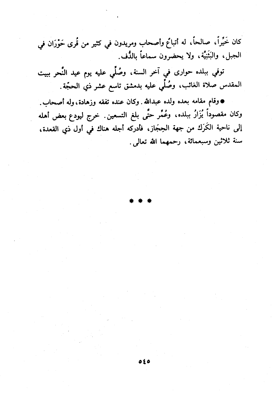كان خيّرا، صالحا، له أتباع وأصحاب ومريدون في كثير من قرى حوران في الجبل، والبثنيّة، ولا يحضرون سماعا بالدّف.