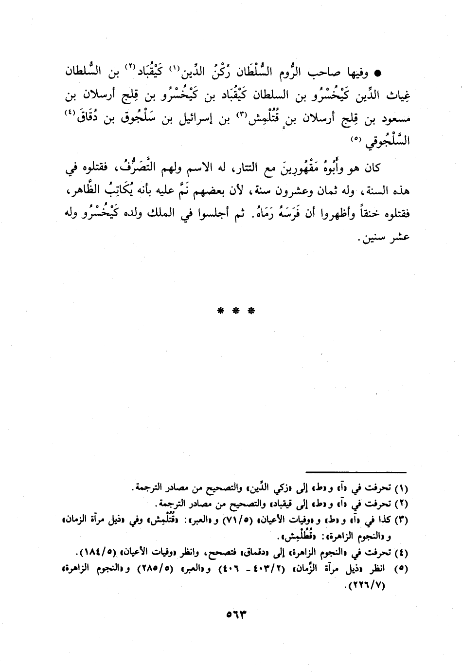 [3] كذا في «آ» و «ط» و «وفيات الأعيان» (5/ 71) و «العبر» : «قتلمش» وفي «ذيل مرآة الزمان» و «النجوم الزاهرة» : «قطلمش» .