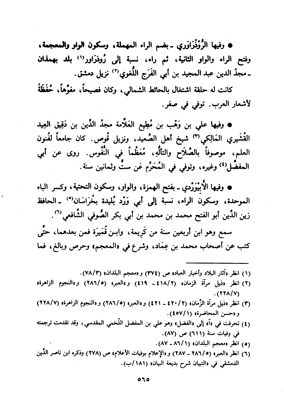 وفيها الرّوذراوري- بضم الراء المهملة، وسكون الواو والمعجمة، وفتح الراء والواو الثانية، ثم راء، نسبة إلى روذراور [1] بلد بهمذان- مجد الدين عبد المجيد بن أبي الفرج اللّغوي [2] نزيل دمشق.