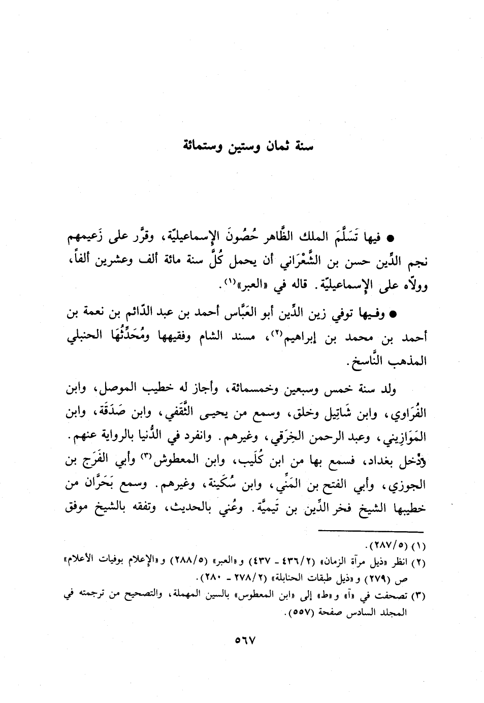 [2] انظر «ذيل مرآة الزمان» (2/ 436- 437) و «العبر» (5/ 288) و «الإعلام بوفيات الأعلام» ص (279) و «ذيل طبقات الحنابلة» (2/ 278- 280) .