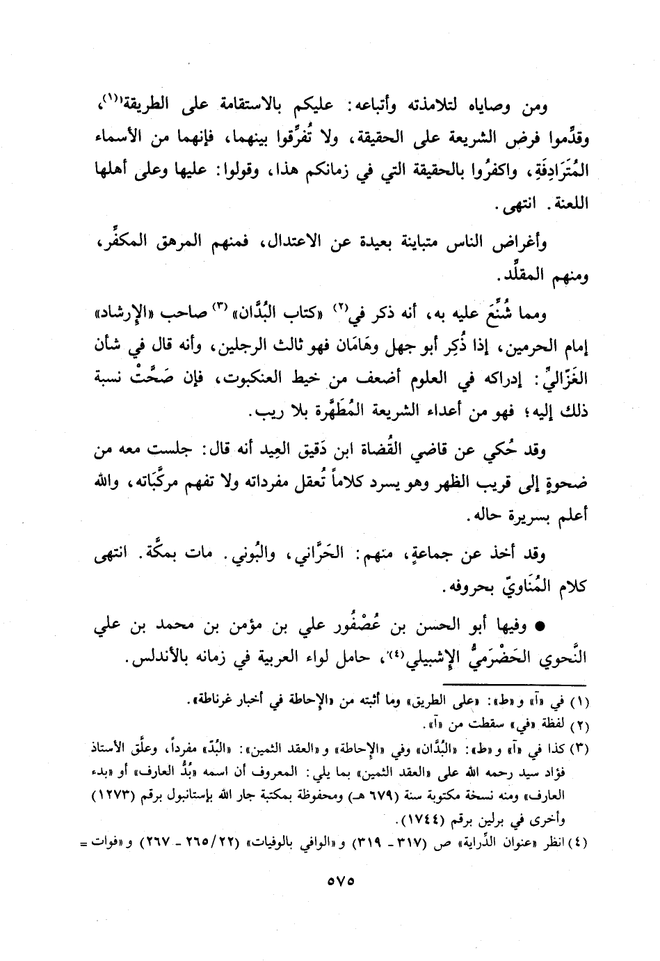 [3] كذا في «آ» و «ط» : «البدّان» وفي «الإحاطة» و «العقد الثمين» : «البدّ» مفردا، وعلّق الأستاذ فؤاد سيد رحمه الله على «العقد الثمين» بما يلي: المعروف أن اسمه «بدّ العارف» أو «بدء العارف» ومنه نسخة مكتوبة سنة (679 هـ) ومحفوظة بمكتبة جار الله بإستانبول برقم (1273) وأخرى في برلين برقم (1744) .