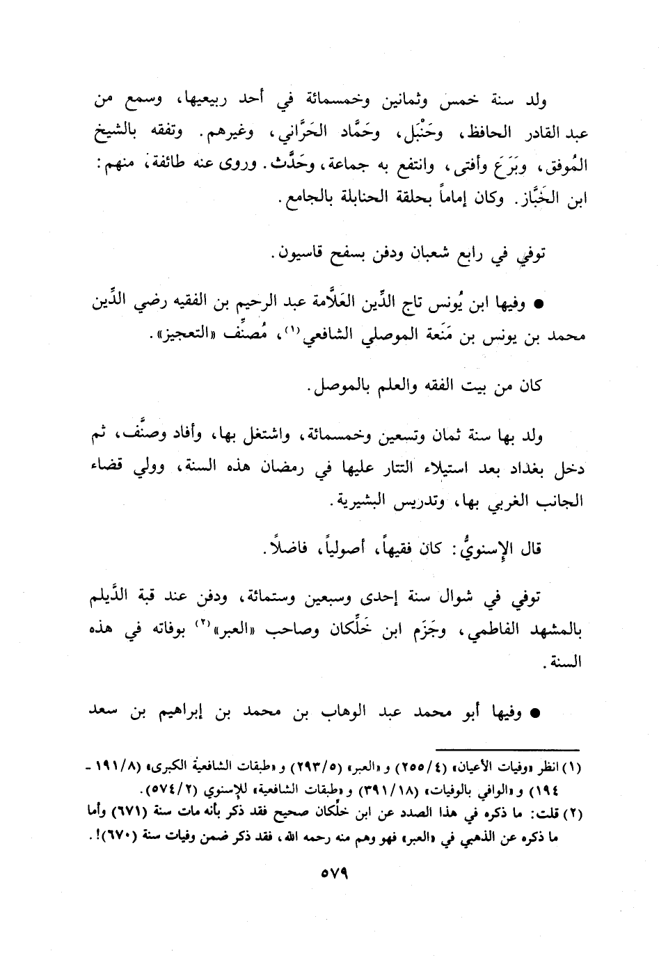 [2] قلت: ما ذكره في هذا الصدد عن ابن خلّكان صحيح فقد ذكر بأنه مات سنة (671) وأما ما ذكره عن الذهبي في «العبر» فهو وهم منه رحمه الله، فقد ذكر ضمن وفيات سنة (670) !.