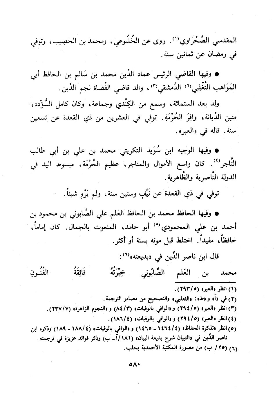 [5] انظر «تذكرة الحفاظ» (4/ 1464- 1465) و «الوافي بالوفيات» (4/ 188- 189) وذكره ابن ناصر الدّين في «التبيان شرح بديعة البيان» (181/ آ- ب) وذكر فوائد عزيزة في ترجمته.
