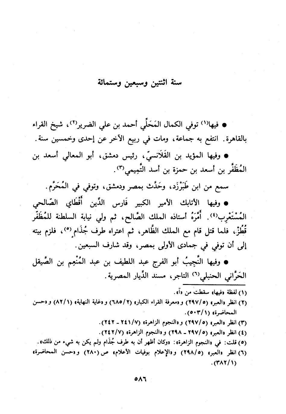 [6] انظر «العبر» (5/ 298) و «الإعلام بوفيات الأعلام» ص (280) و «حسن المحاضرة» (1/ 382) .