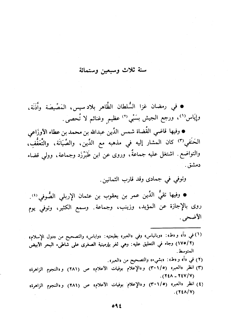 [4] انظر «العبر» (5/ 301) و «الإعلام بوفيات الأعلام» ص (281) و «النجوم الزاهرة» (7/ 248) .