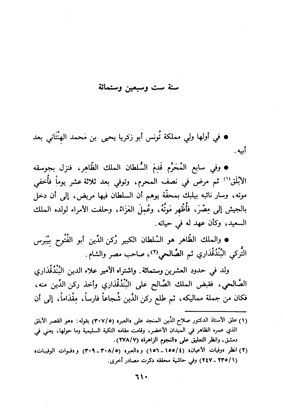 [1] علق الأستاذ الدكتور صلاح الدّين المنجد على «العبر» (5/ 307) بقوله: «هو القصر الأبلق الذي عمره الظاهر في الميدان الأخضر، وقامت مقامه التكية السليمية وما حولها، يعني في دمشق، وانظر التعليق على «النجوم الزاهرة» (7/ 278) .