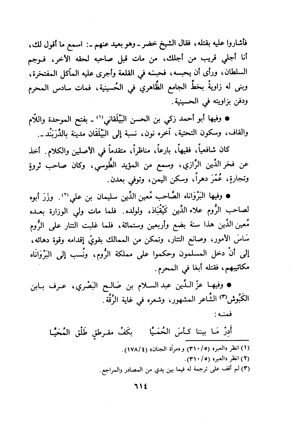 وفيها عزّ الدّين عبد السلام بن صالح البصري، عرف بابن الكبوش [3] الشّاعر المشهور، وشعره في غاية الرّقّة.