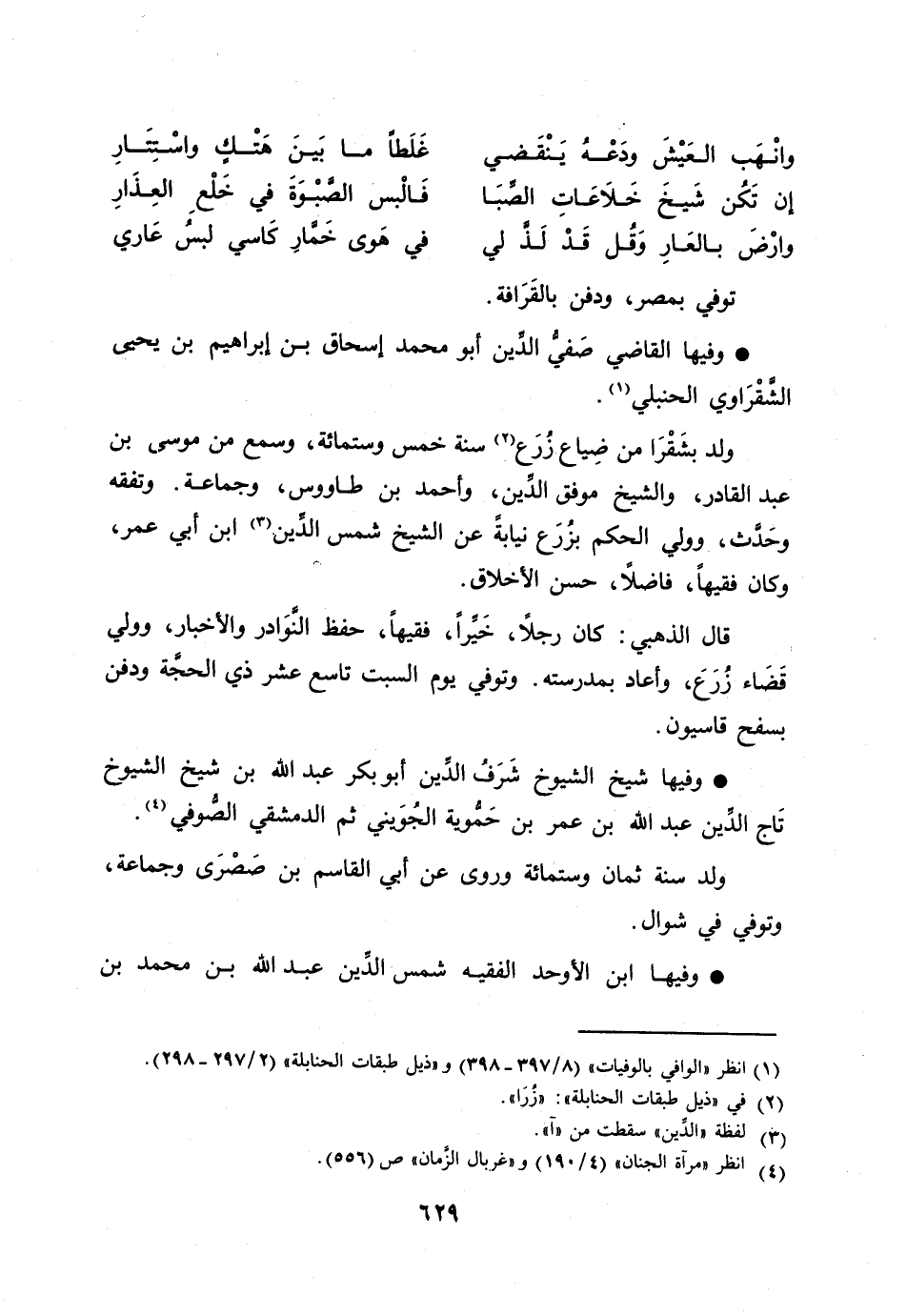 [1] انظر «الوافي بالوفيات» (8/ 397- 398) و «ذيل طبقات الحنابلة» (2/ 297- 298) .