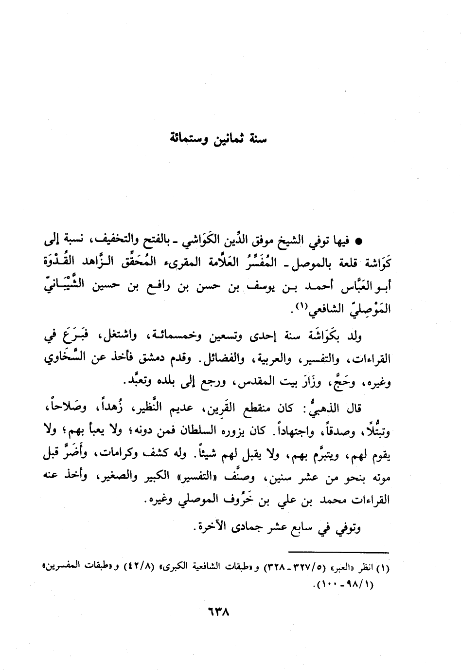 [1] انظر «العبر» (5/ 327- 328) و «طبقات الشافعية الكبرى» (8/ 42) و «طبقات المفسرين» (1/ 98- 100) .
