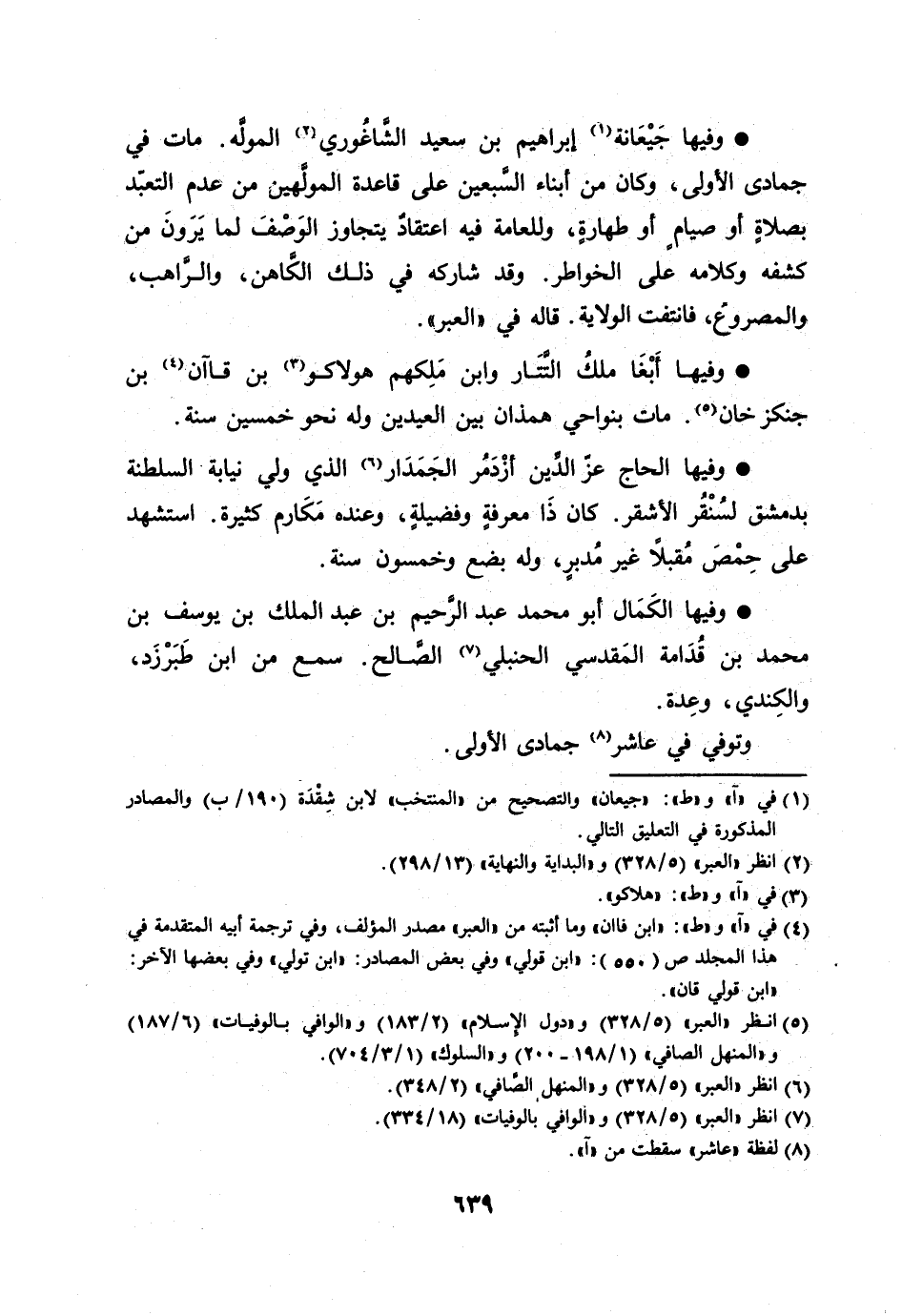 [7] انظر «العبر» (5/ 328) و «الوافي بالوفيات» (18/ 334) .