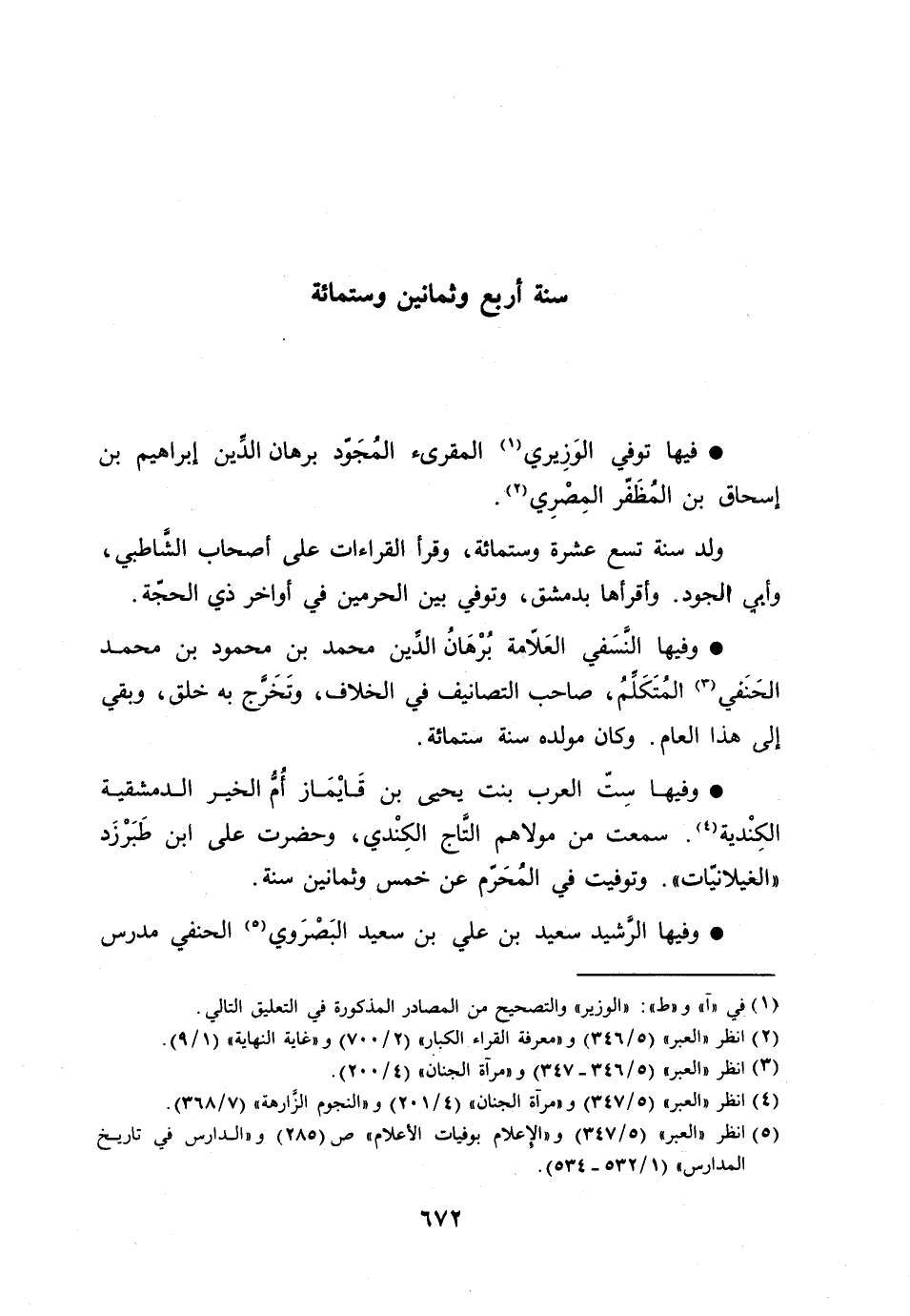 [5] انظر «العبر» (5/ 347) و «الإعلام بوفيات الأعلام» ص (285) و «الدارس في تاريخ المدارس» (1/ 532- 534) .