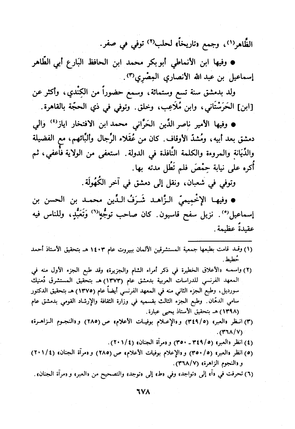 الظّاهر [1] ، وجمع «تاريخا» لحلب [2] توفي في صفر.