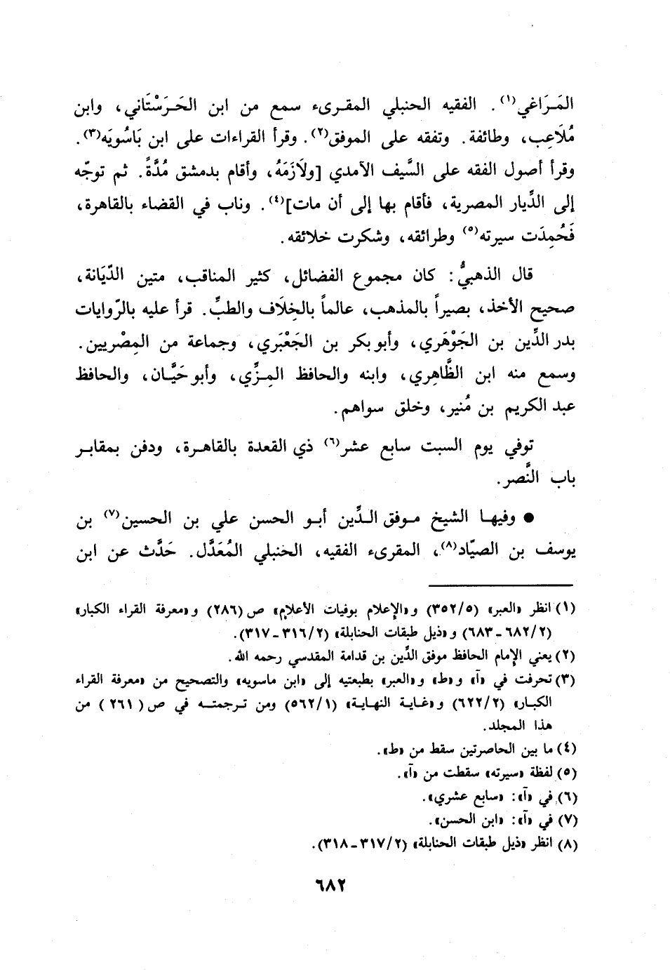 [1] انظر «العبر» (5/ 352) و «الإعلام بوفيات الأعلام» ص (286) و «معرفة القراء الكبار» (2/ 682- 683) و «ذيل طبقات الحنابلة» (2/ 316- 317) .