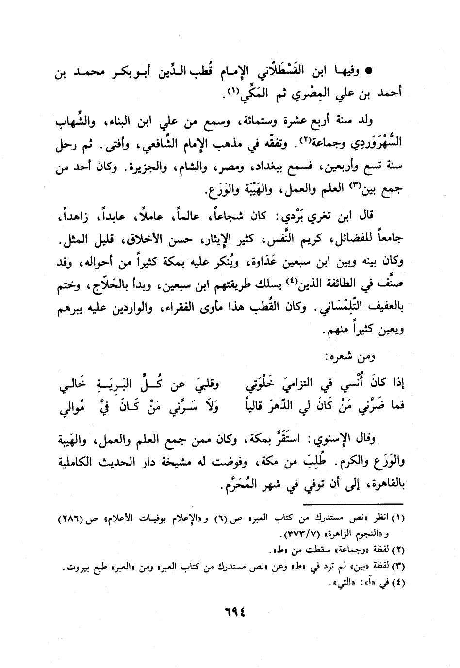 [1] انظر «نص مستدرك من كتاب العبر» ص (6) و «الإعلام بوفيات الأعلام» ص (286) و «النجوم الزاهرة» (7/ 373) .
