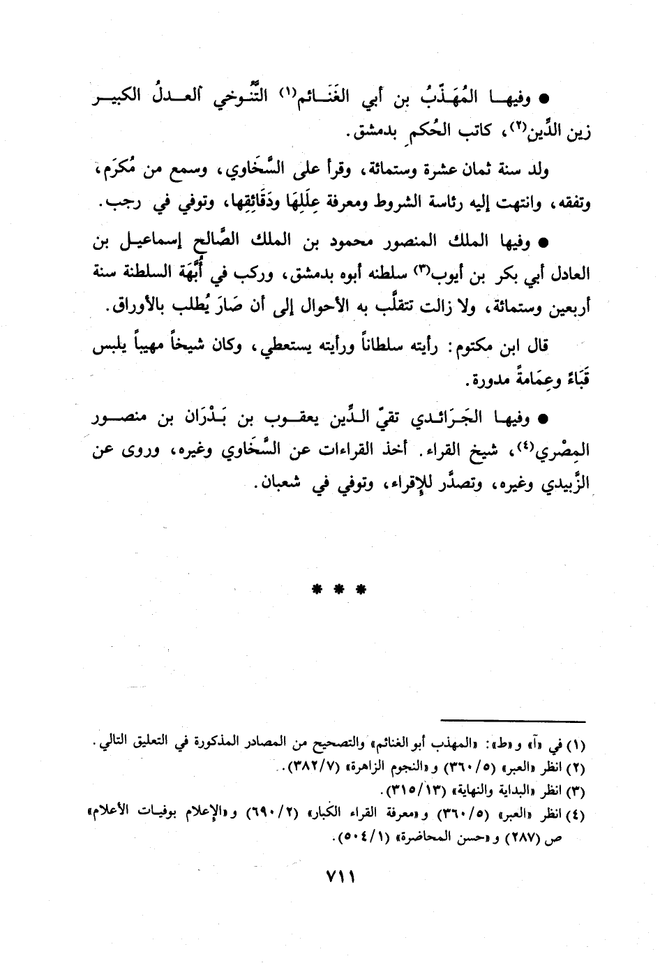 [4] انظر «العبر» (5/ 360) و «معرفة القراء الكبار» (2/ 690) و «الإعلام بوفيات الأعلام» ص (287) و «حسن المحاضرة» (1/ 504) .