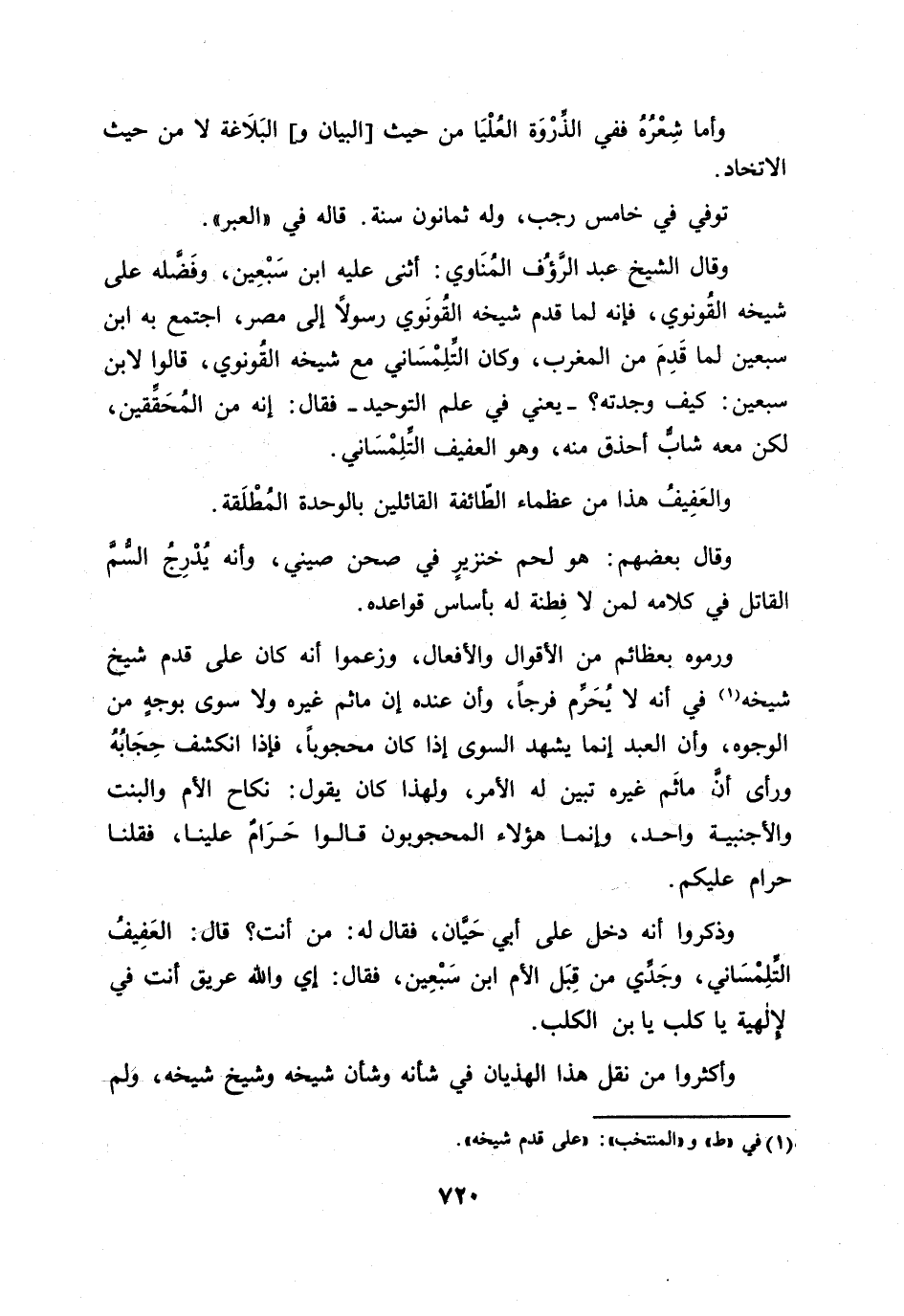 والعفيف هذا من عظماء الطّائفة القائلين بالوحدة المطلقة.