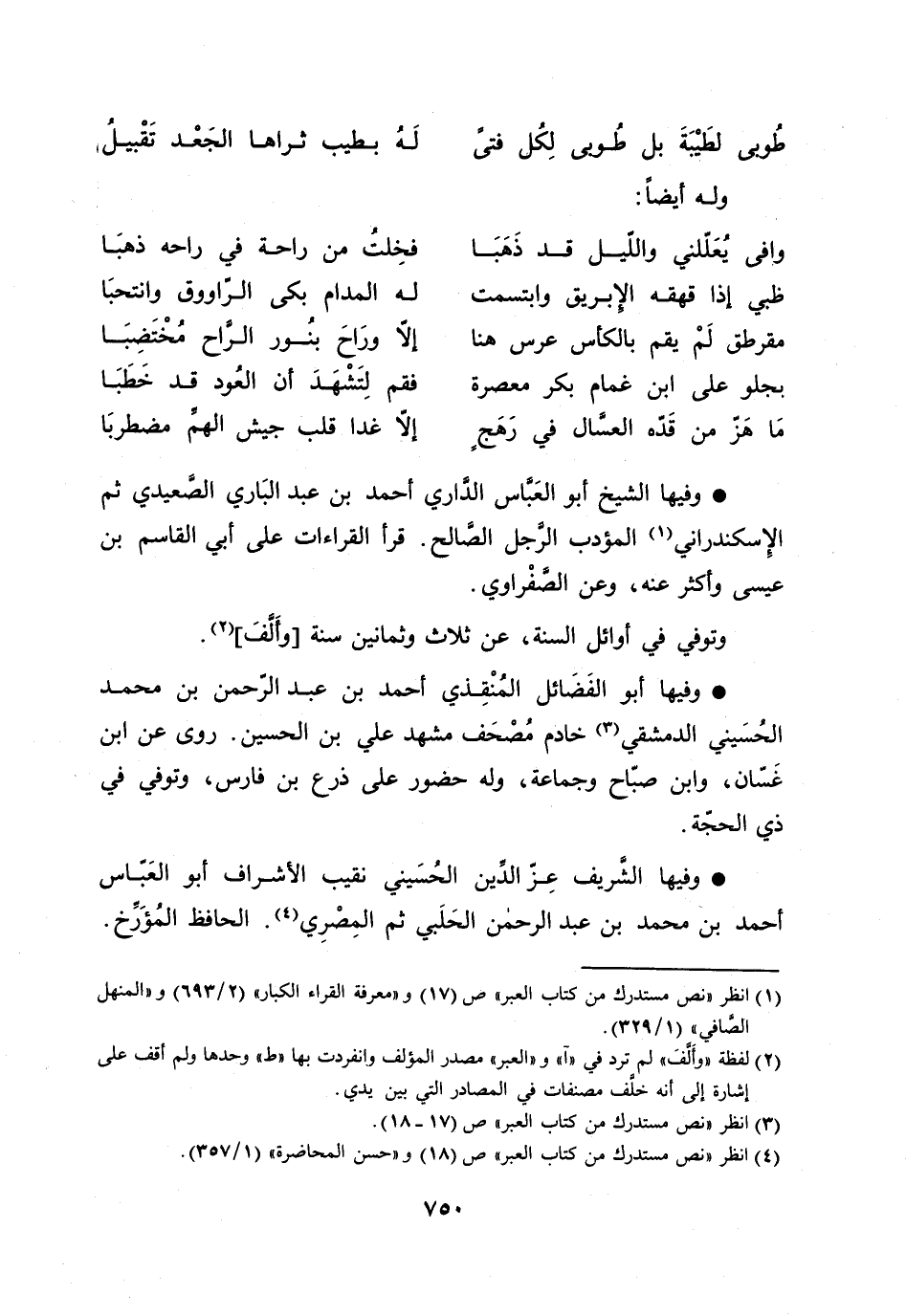 [4] انظر «نص مستدرك من كتاب العبر» ص (18) و «حسن المحاضرة» (1/ 357) .