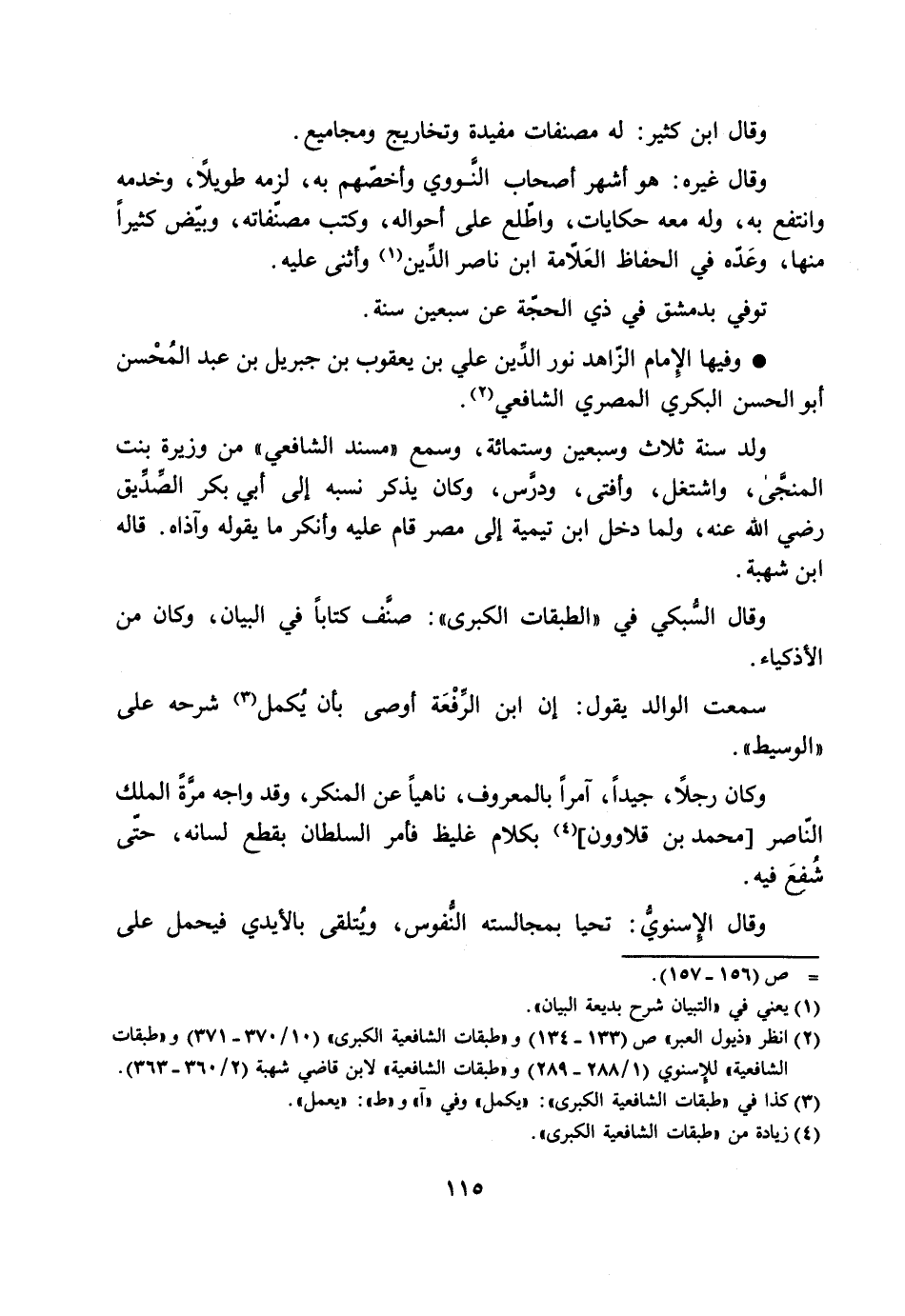 [2] انظر «ذيول العبر» ص (133- 134) و «طبقات الشافعية الكبرى» (10/ 370- 371) و «طبقات الشافعية» للإسنوي (1/ 288- 289) و «طبقات الشافعية» لابن قاضي شهبة (2/ 360- 363) .