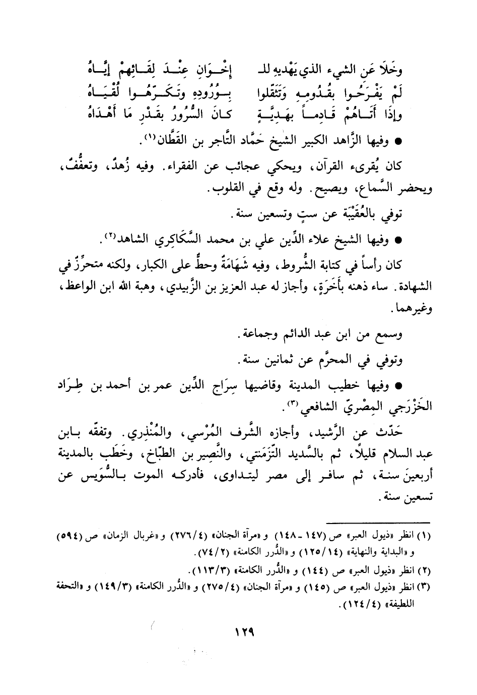 [3] انظر «ذيول العبر» ص (145) و «مرآة الجنان» (4/ 275) و «الدّرر الكامنة» (3/ 149) و «التحفة اللطيفة» (4/ 124) .