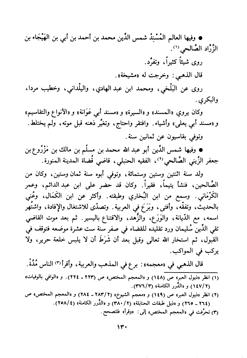 [2] انظر «ذيول العبر» ص (149) و «معجم الشيوخ» (2/ 283- 284) و «المعجم المختص» ص (264- 265) و «ذيل طبقات الحنابلة» (2/ 380) و «الدّرر الكامنة» (4/ 258) .