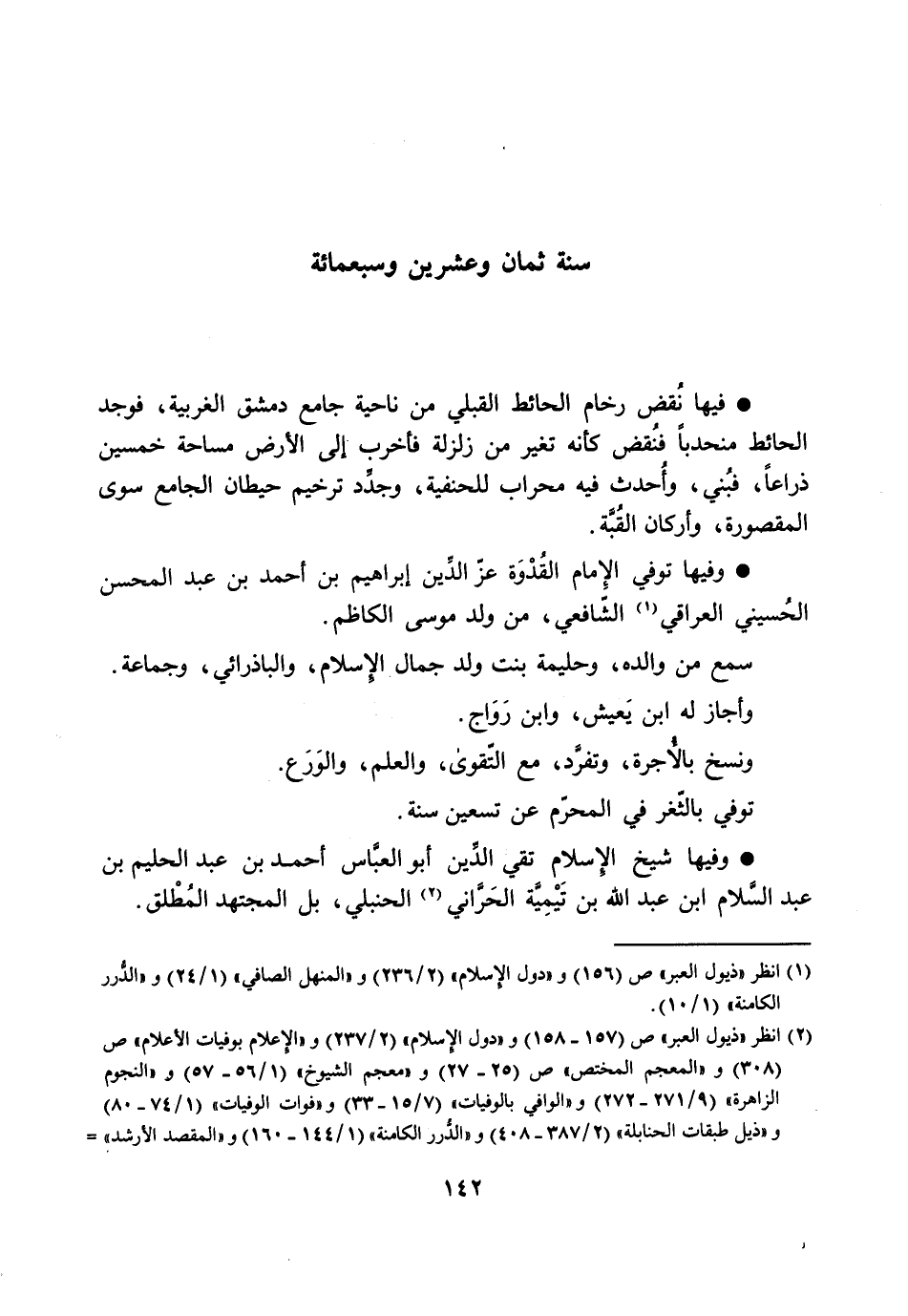 وفيها شيخ الإسلام تقي الدّين أبو العبّاس أحمد بن عبد الحليم بن عبد السّلام ابن عبد الله بن تيميّة الحرّاني [2] الحنبلي، بل المجتهد المطلق.