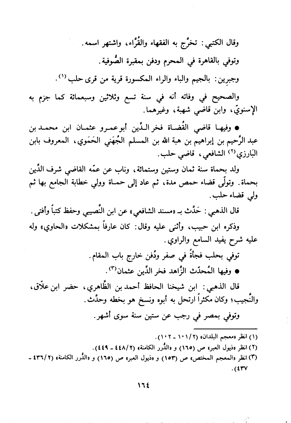 وفيها قاضي القضاة فخر الدّين أبو عمرو عثمان ابن محمد بن عبد الرّحيم بن إبراهيم بن هبة الله بن المسلم الجهني الحموي، المعروف بابن البارزي [2] الشافعي، قاضي حلب.