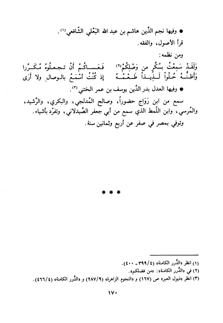 وفيها نجم الدّين هاشم بن عبد الله البعلي الشّافعي [1] .