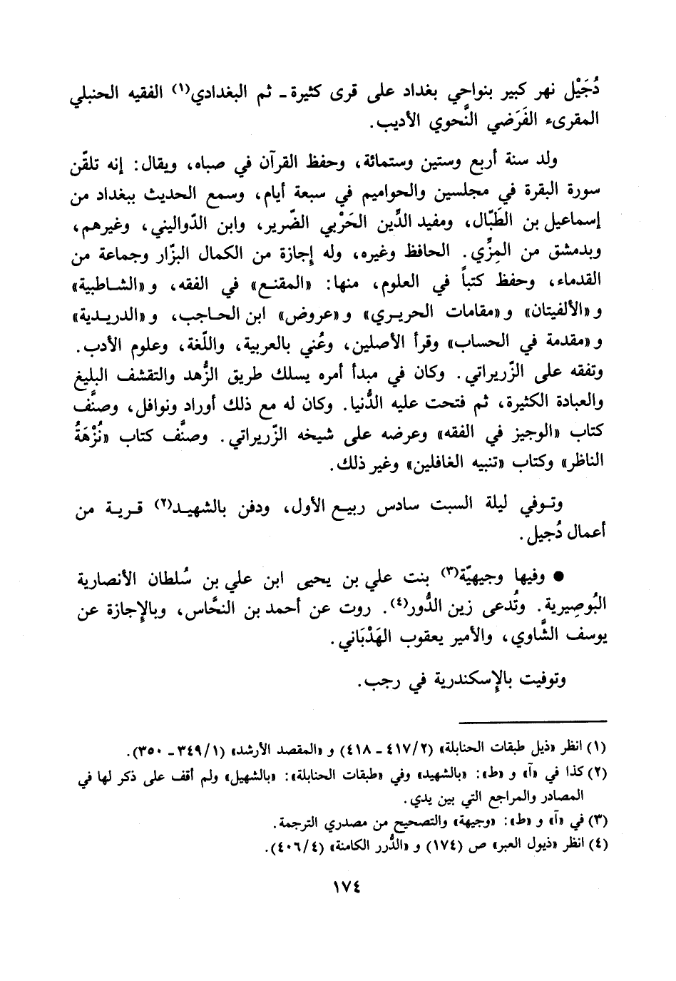 دجيل نهر كبير بنواحي بغداد على قرى كثيرة- ثم البغدادي [1] الفقيه الحنبلي المقرئ الفرضي النّحوي الأديب.
