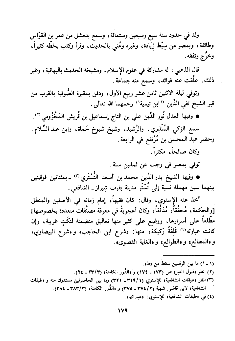 [3] انظر «طبقات الشافعية» للإسنوي (1/ 319- 321) وما بين الحاصرتين مستدرك منه و «طبقات الشافعية» لابن قاضي شهبة (2/ 374- 375) و «الدّرر الكامنة» (3/ 383- 384) .