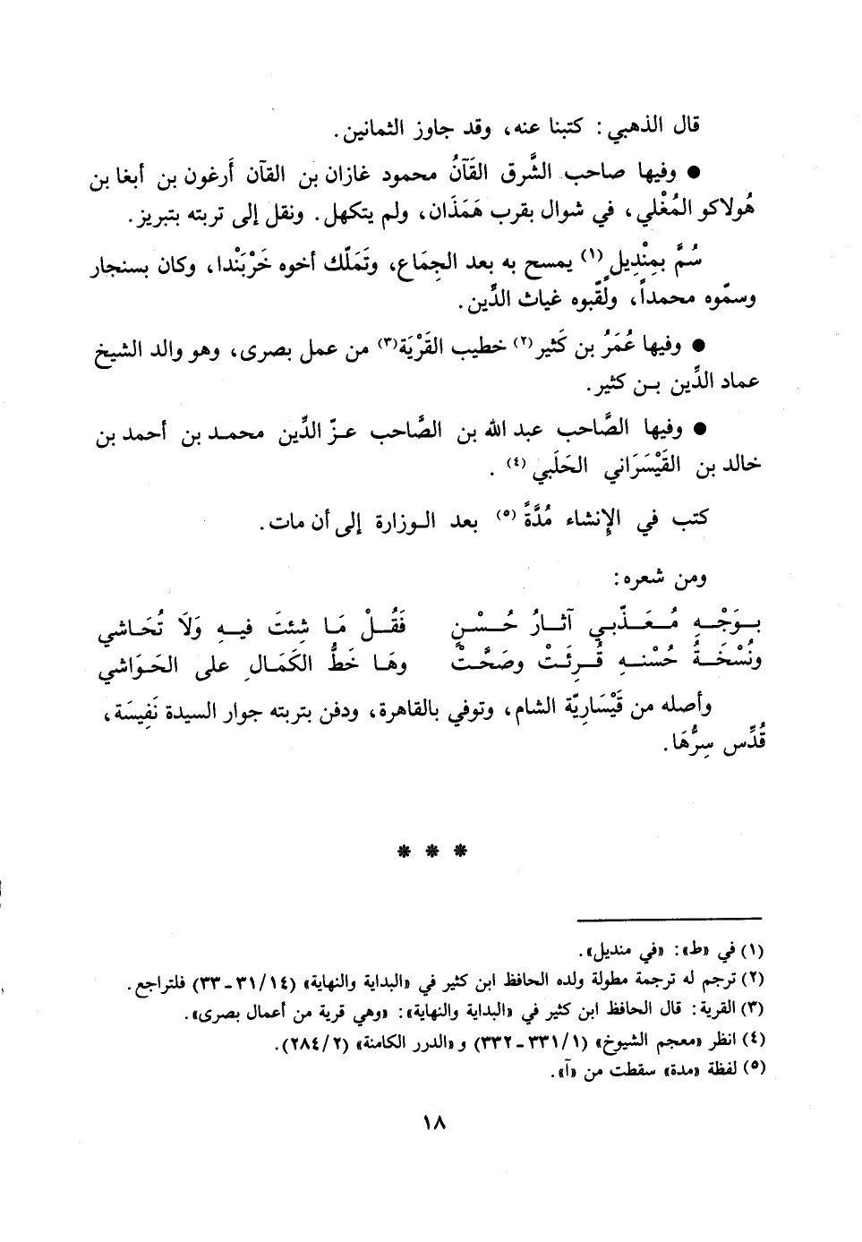 [4] انظر «معجم الشيوخ» (1/ 331- 332) و «الدرر الكامنة» (2/ 284) .