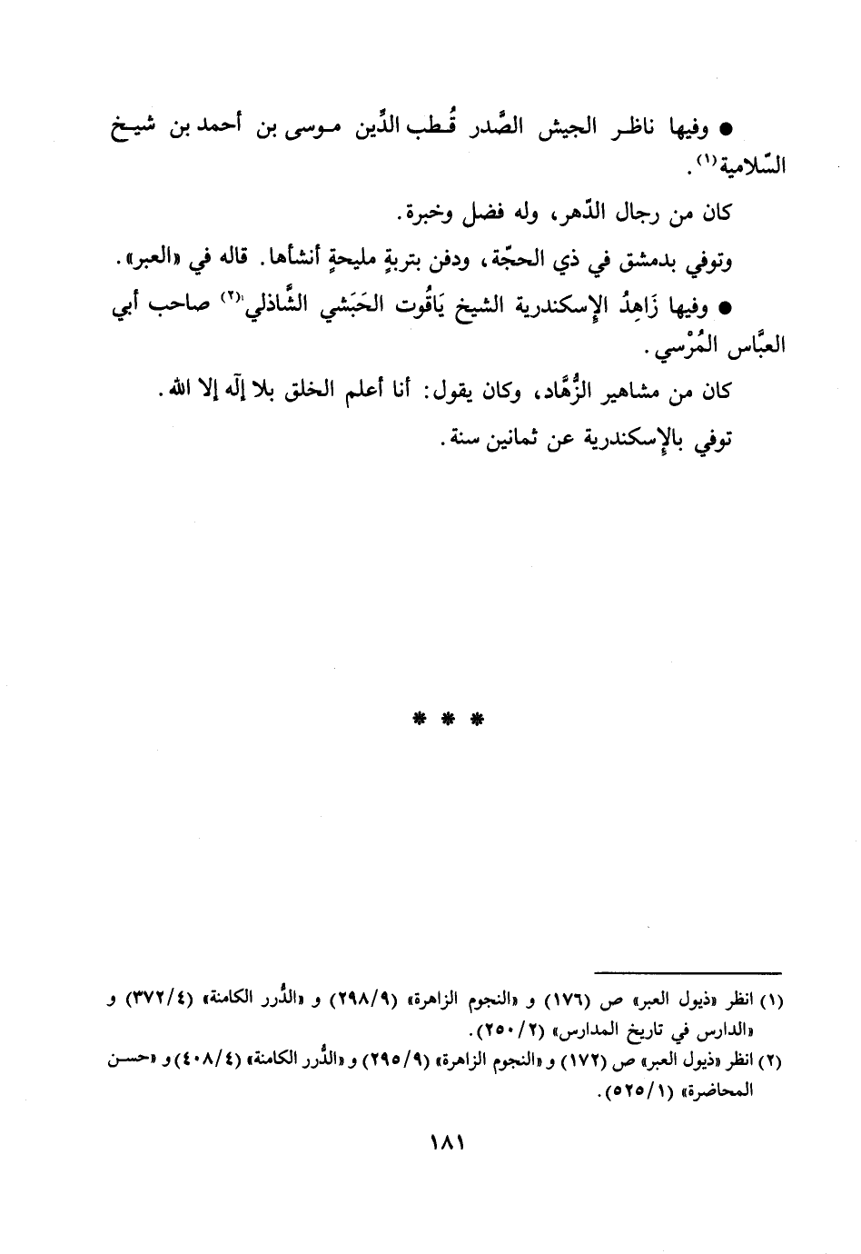 [2] انظر «ذيول العبر» ص (172) و «النجوم الزاهرة» (9/ 295) و «الدّرر الكامنة» (4/ 408) و «حسن المحاضرة» (1/ 525) .