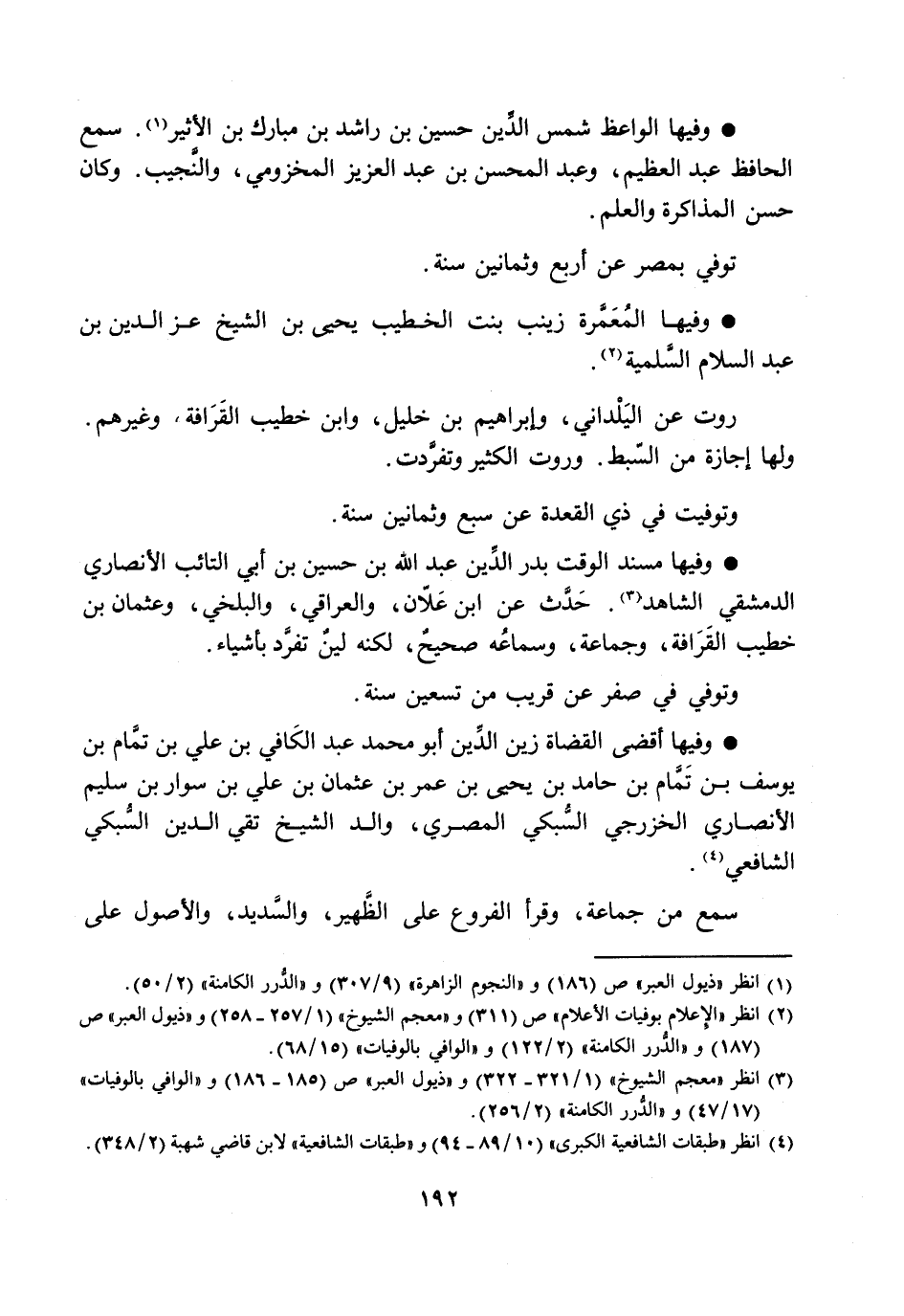 [3] انظر «معجم الشيوخ» (1/ 321- 322) و «ذيول العبر» ص (185- 186) و «الوافي بالوفيات» (17/ 47) و «الدّرر الكامنة» (2/ 256) .