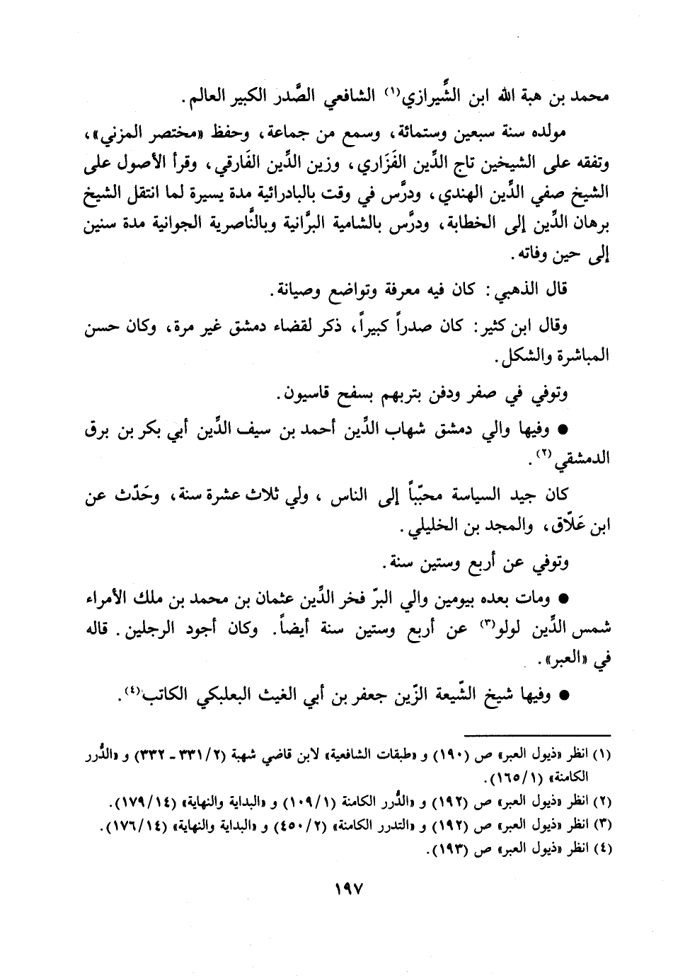 [1] انظر «ذيول العبر» ص (190) و «طبقات الشافعية» لابن قاضي شهبة (2/ 331- 332) و «الدّرر الكامنة» (1/ 165) .