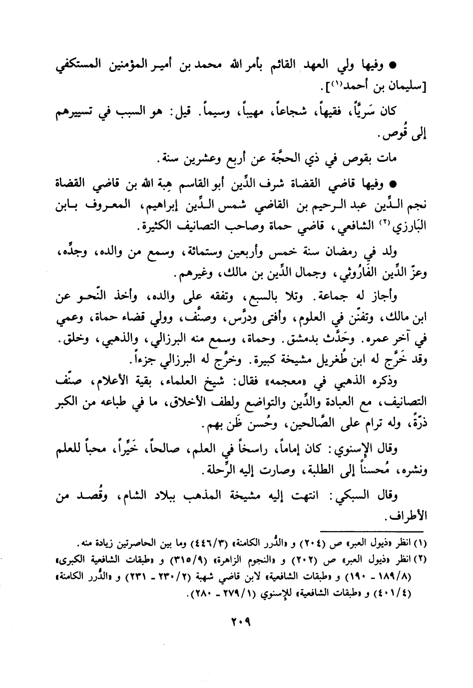 [2] انظر «ذيول العبر» ص (202) و «النجوم الزاهرة» (9/ 315) و «طبقات الشافعية الكبرى» (8/ 189- 190) و «طبقات الشافعية» لابن قاضي شهبة (2/ 230- 231) و «الدّرر الكامنة» (4/ 401) و «طبقات الشافعية» للإسنوي (1/ 279- 280) .