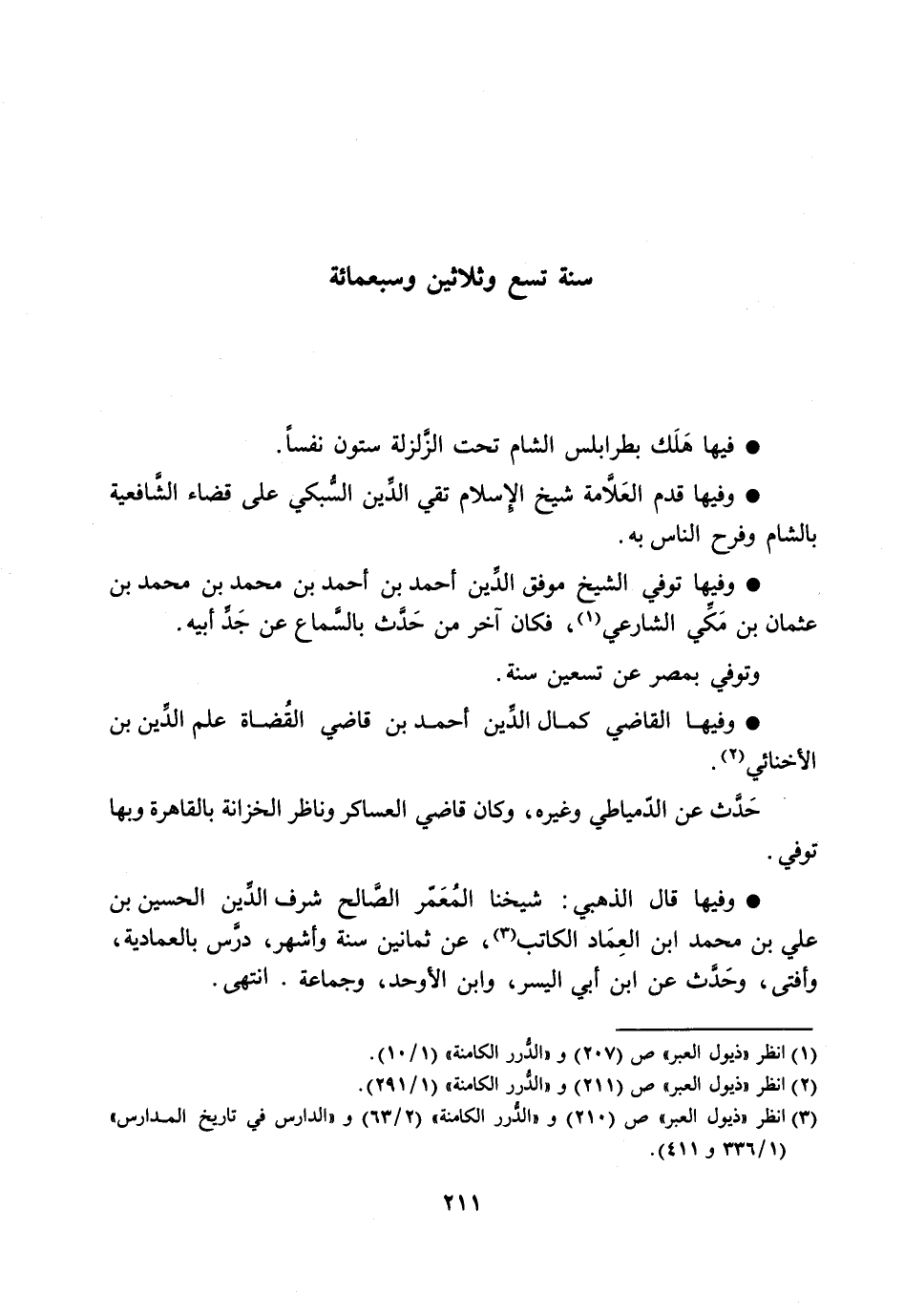 [3] انظر «ذيول العبر» ص (210) و «الدّرر الكامنة» (2/ 63) و «الدارس في تاريخ المدارس» (1/ 336 و 411) .