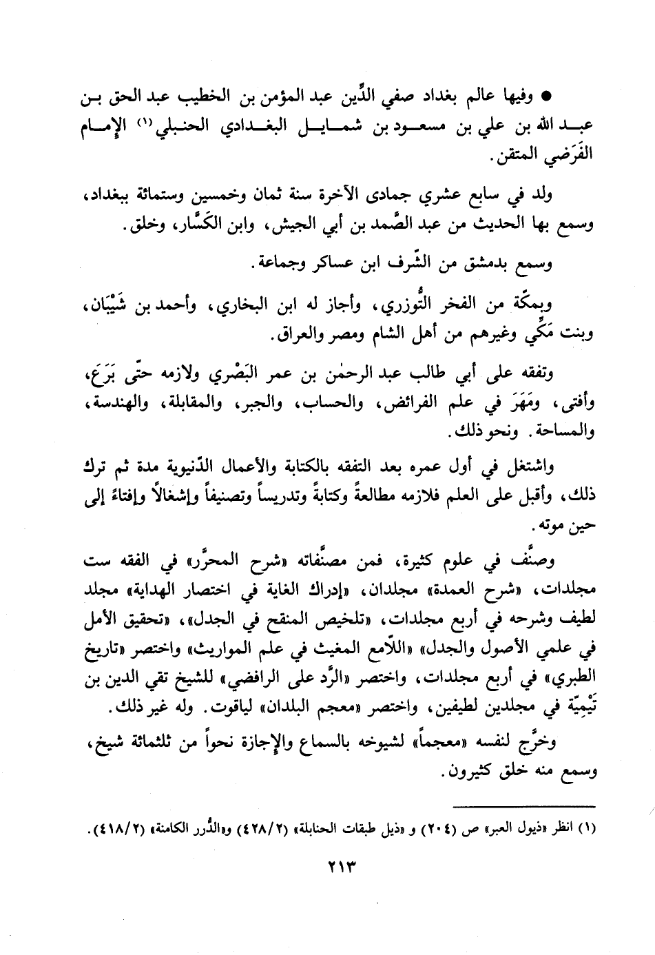 [1] انظر «ذيول العبر» ص (204) و «ذيل طبقات الحنابلة» (2/ 428) و «الدّرر الكامنة» (2/ 418) .
