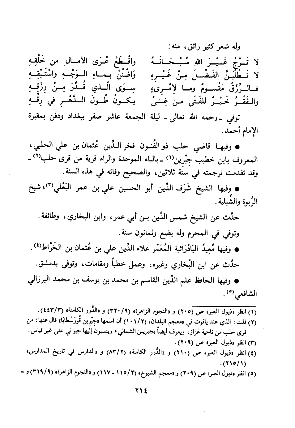 [4] انظر «ذيول العبر» ص (210) و «الدّرر الكامنة» (2/ 83) و «الدارس في تاريخ المدارس» (1/ 215) .