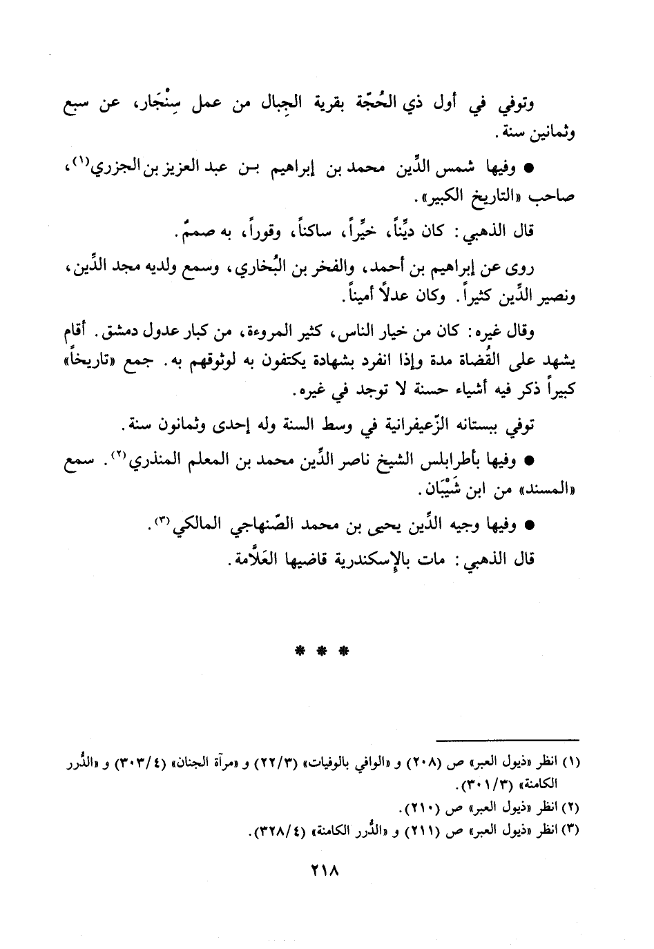 [1] انظر «ذيول العبر» ص (208) و «الوافي بالوفيات» (3/ 22) و «مرآة الجنان» (4/ 303) و «الدّرر الكامنة» (3/ 301) .