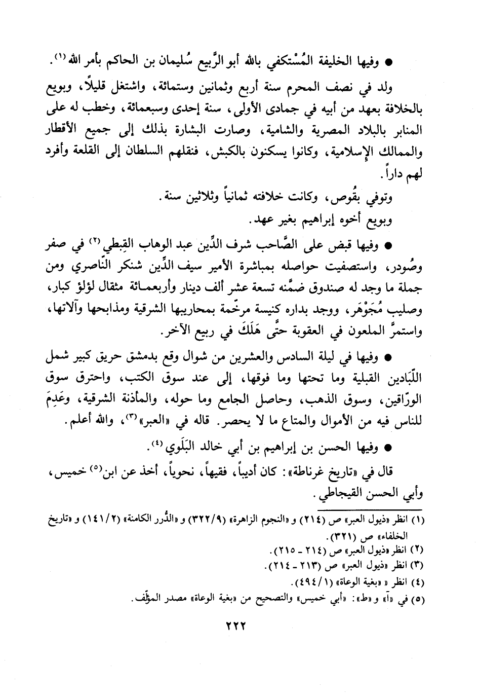 وفيها الخليفة المستكفي بالله أبو الرّبيع سليمان بن الحاكم بأمر الله [1] .