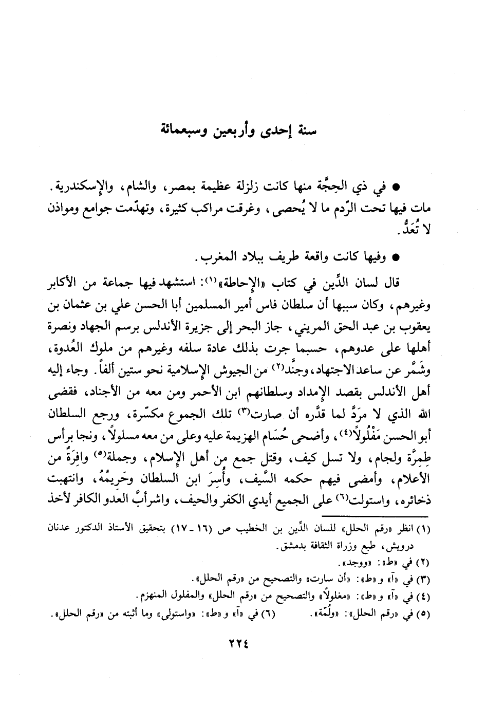 [1] انظر «رقم الحلل» للسان الدّين بن الخطيب ص (16- 17) بتحقيق الأستاذ الدكتور عدنان درويش، طبع وزارة الثقافة بدمشق.