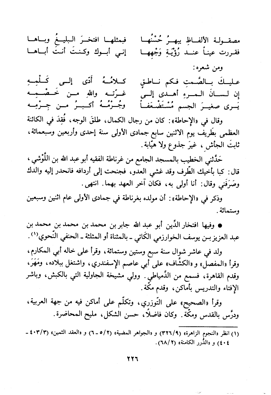 وفيها افتخار الدّين أبو عبد الله جابر بن محمد بن محمد بن محمد بن عبد العزيز بن يوسف الخوارزمي الكاتي- بالمثناة أو المثلثة- الحنفي النّحوي [1] .