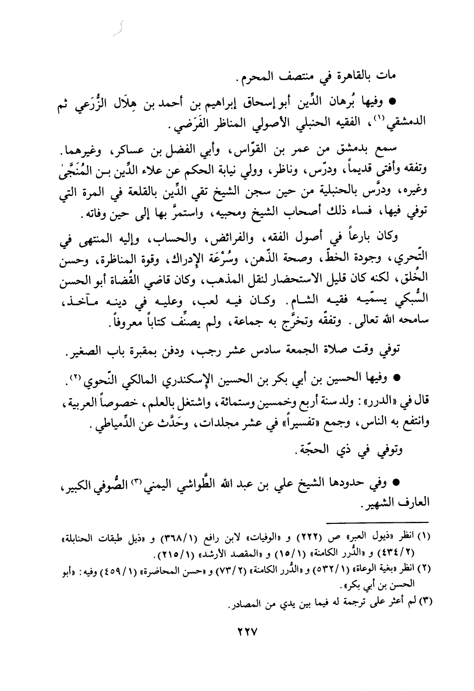 وفيها برهان الدّين أبو إسحاق إبراهيم بن أحمد بن هلال الزّرعي ثم الدمشقي [1] ، الفقيه الحنبلي الأصولي المناظر الفرضي.
