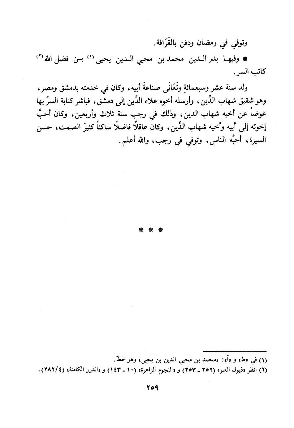 وفيها بدر الدين محمد بن محيي الدين يحيى [1] بن فضل الله [2] كاتب السر.